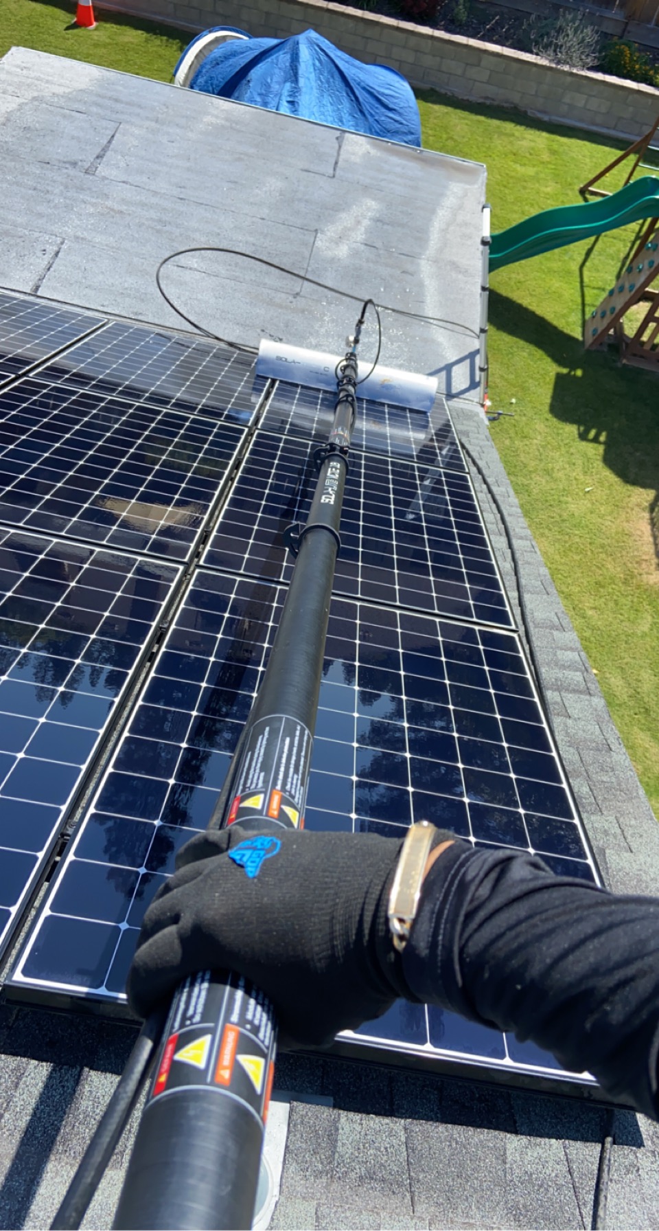 At Golden Rays Solar Cleaning Company LLC, we utilize state-of-the-art hydro-powered brushes along with deionized water to clean solar panels efficiently and effectively. Our process not only ensures a spot-free finish but also adheres to the highest standards of safety for your solar panels. We understand that each solar installation is unique, and our services are tailored to meet the specific needs of your solar array, ensuring optimal performance and longevity.
