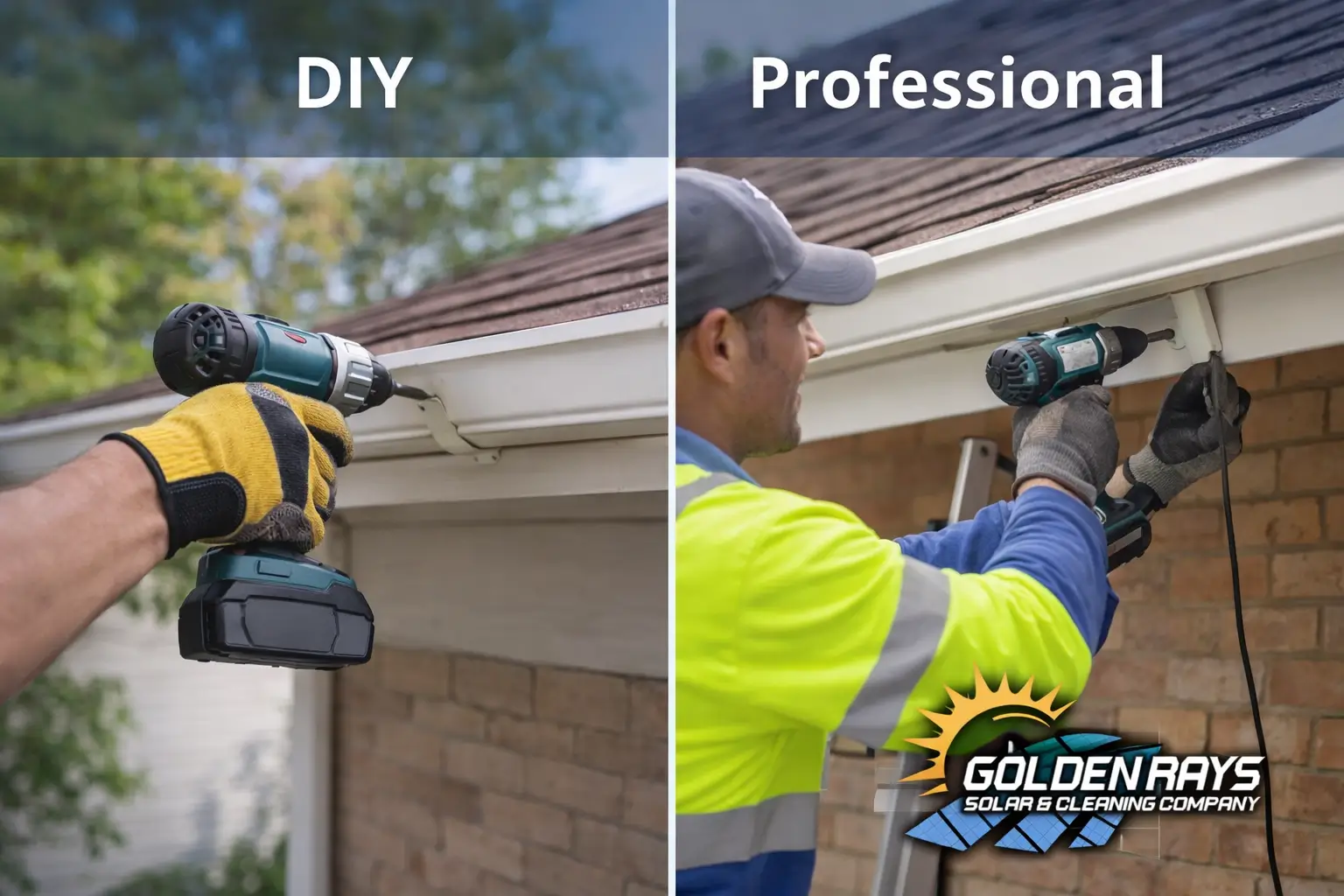 At Golden Rays Solar Cleaning, we regularly help homeowners understand the difference between DIY vs professional gutter installation, so they can make informed decisions that protect their property and budget. This guide breaks down costs, risks, benefits, and key considerations to help you decide the best approach.